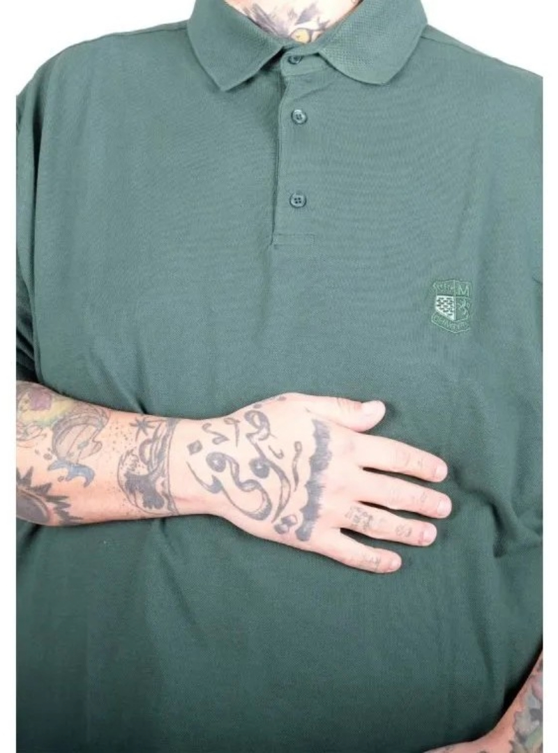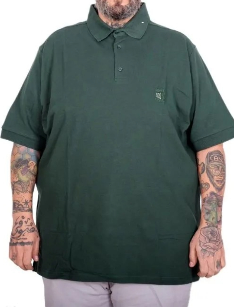 Battal Beden Erkek Tshirt Polo Yaka Nakışlı Klasik Pike 20553 Nefti