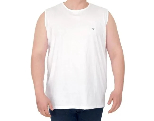 Büyük Beden Erkek Atlet Nakışlı U25101 Beyaz