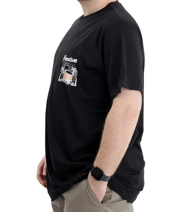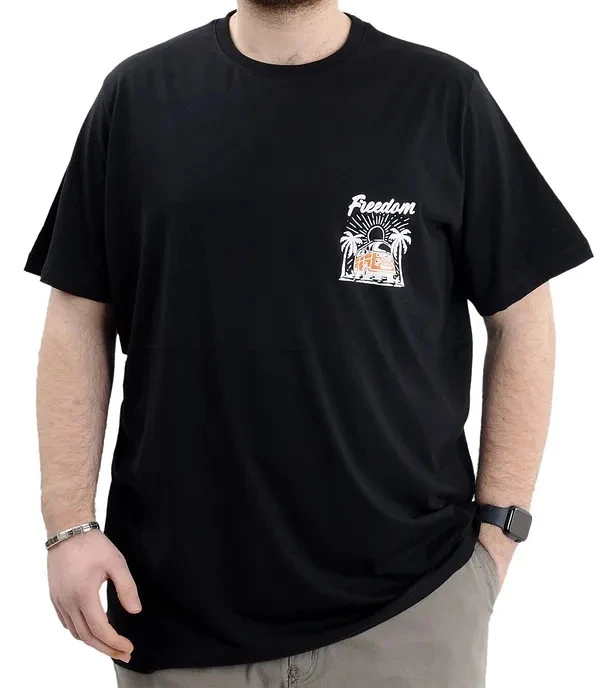 Büyük Beden Erkek Baskılı T-shirt Bisiklet Yaka Freedom U24030 Siyah