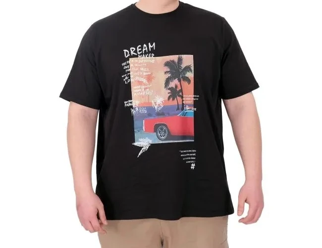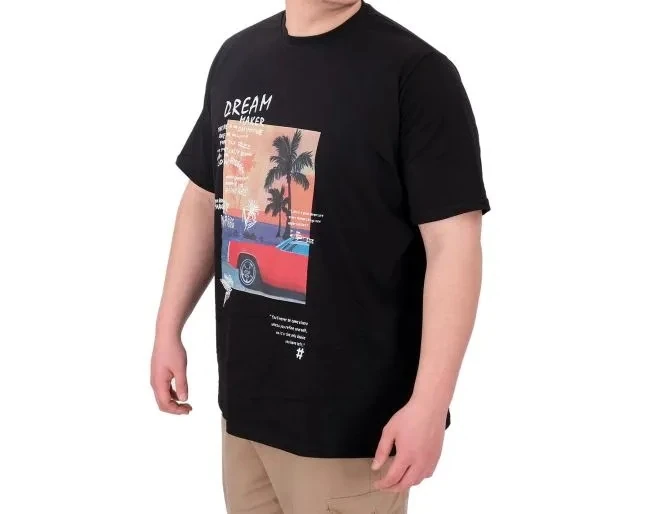 Büyük Beden Erkek Baskılı Tshirt Palm Dream temalı rahat ve basic kombinlerinize uyarlayabilirsiniz. SIYAH Kumaş içeriği: %100 Pamuk Manken Ölçüleri: 203cm / 145kg Beden: 6XL