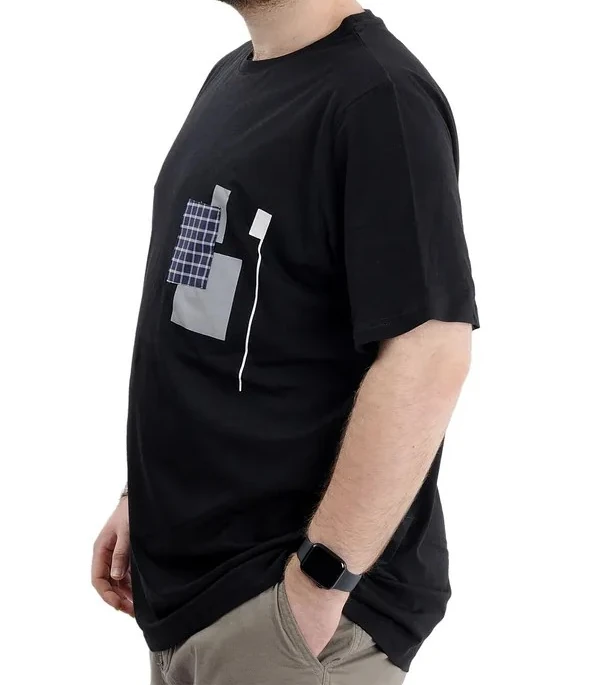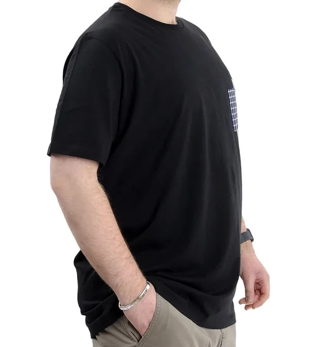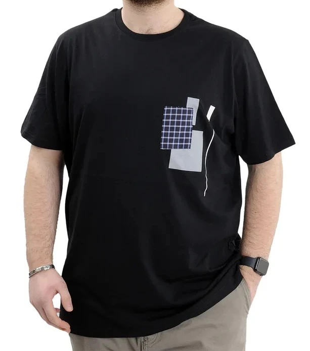 Büyük Beden Erkek Bisiklet Yaka T-Shirt Baskılı GARNILI U24045 Siyah
