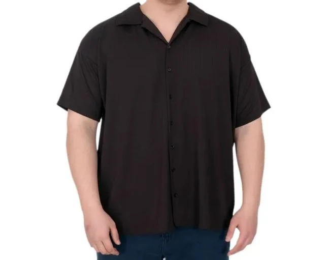 Büyük Beden Erkek Gömlek Apas Yaka Şerit Desen Jakar U24382 Siyah