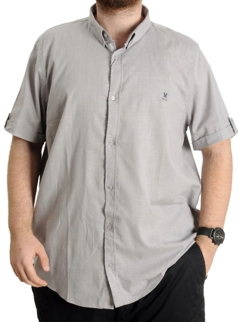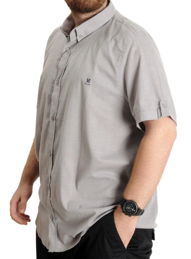 Büyük Beden Erkek Gömlek K.Kol Keten Likralı Düğmeli Yaka 20393 Gri