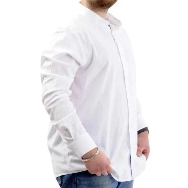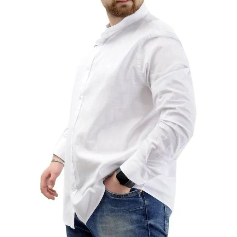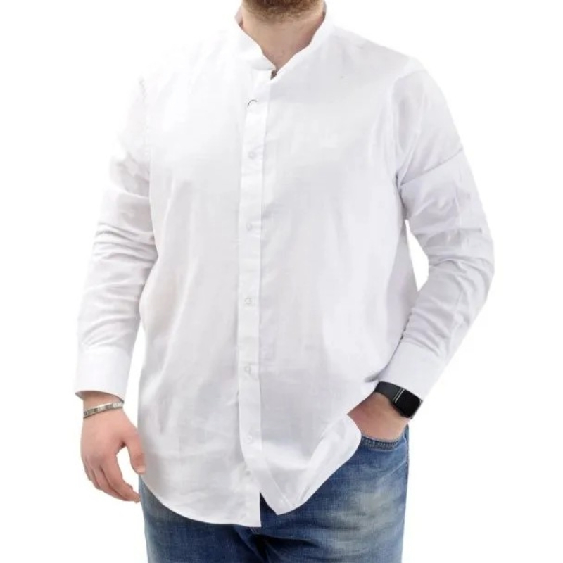 Uzun Kol Hakim Yaka Likralı Keten Gömlek. Kumaş İçeriği %97 Pamuk %3 Likra. Modelin Ölçüleri: 183 cm / 117 kg Beden: 3XL