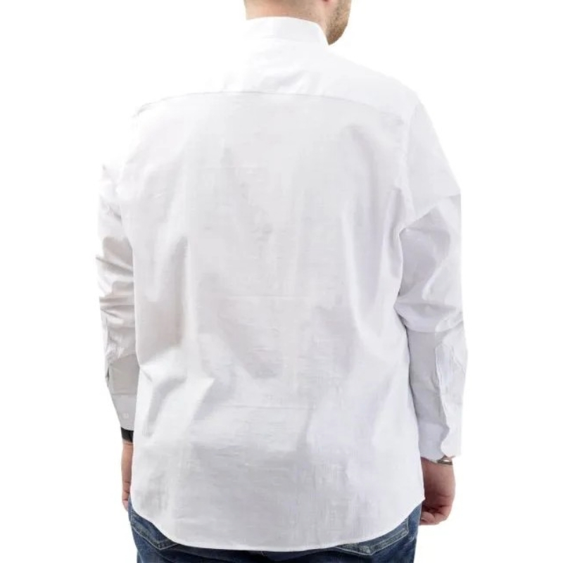 Büyük Beden Erkek Gömlek Uzun Kol Likralı Keten Gömlek 20385 Beyaz