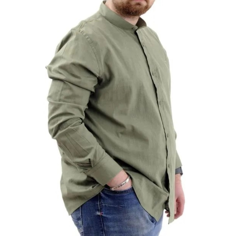 Büyük beden erkek giyimi için tasarlanmış olan uzun kol likralı keten gömlek, hem şıklığı hem de konforu bir arada sunmaktadır. CÜSSELİ markasının U20385 model numarasına sahip bu gömlek, haki rengi ile dikkat çekmektedir.