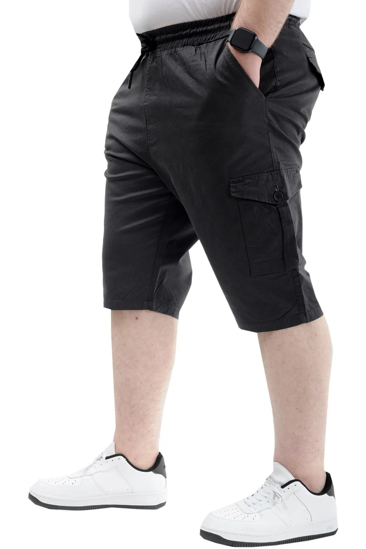 Büyük Beden Erkek Kapri Kargo Cepli Beli Bağlamalı VALENCIA 21404 Antrasit