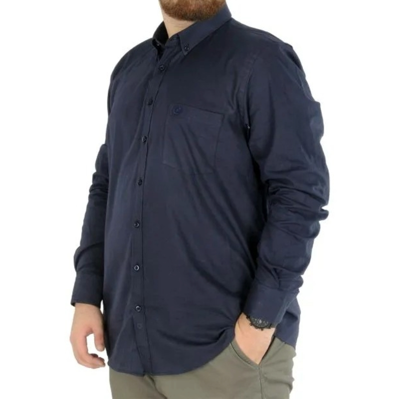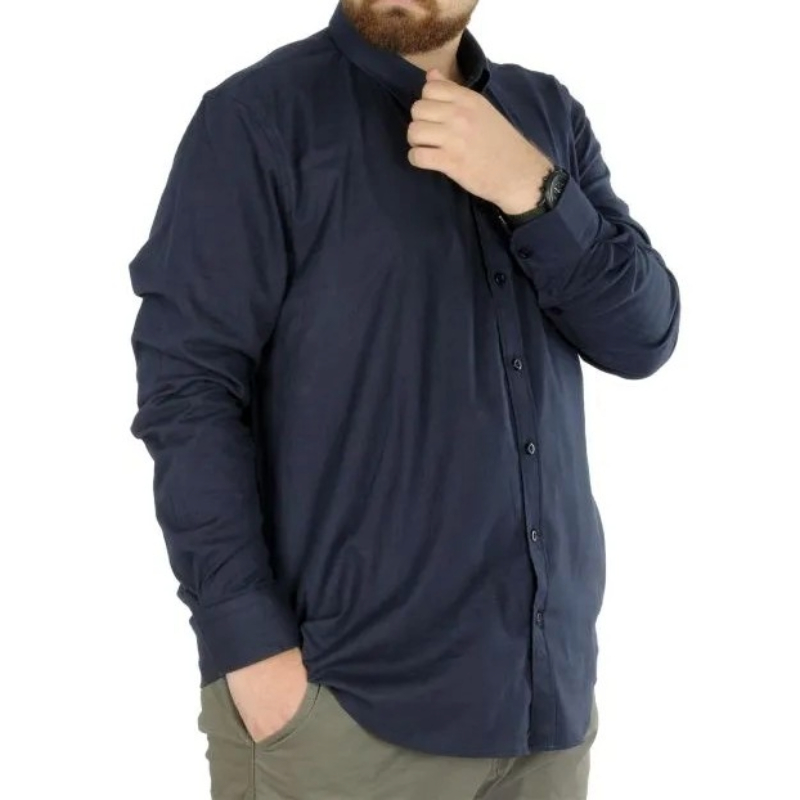 Lacivert rengiyle dikkat çeken bu gömlek, uzun kol tasarımı ve cepli yapısıyla günlük kullanımda pratiklik sunmaktadır. Modelin ölçüleri, 1.83 cm boy ve 134 kg ağırlığındaki bir birey için 4XL beden üzerinden belirlenmiştir. Bu özellik, büyük beden kullanıcılar için ideal bir seçenek oluşturur.