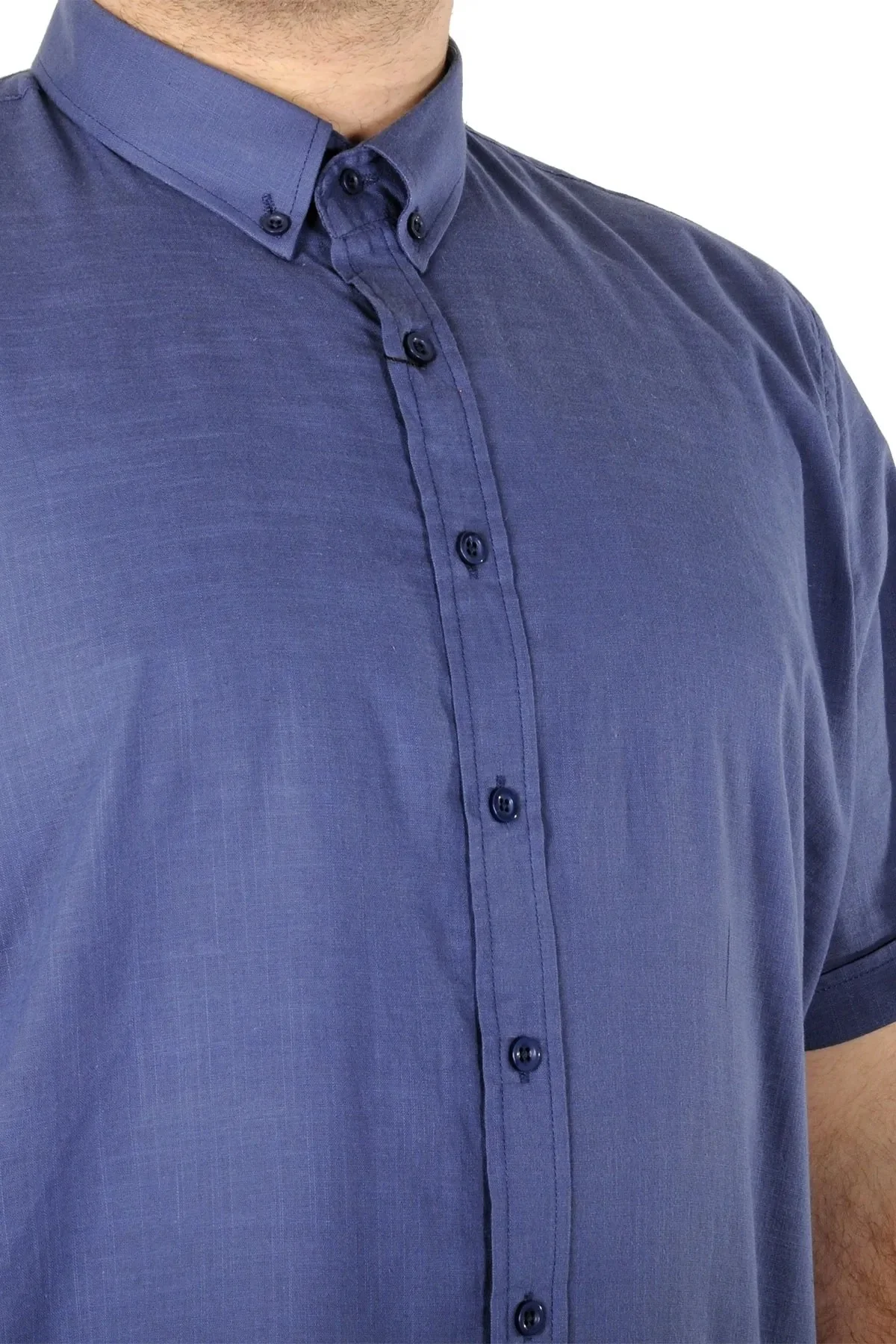 Büyük Beden Erkek Keten Likralı Gömlek 20393 İndigo