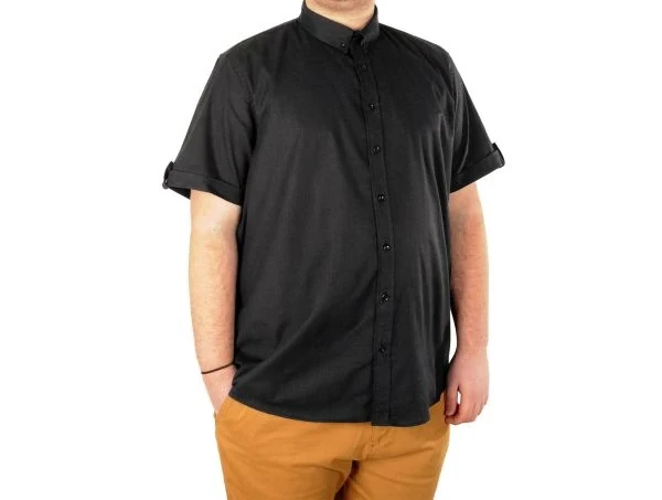 Büyük Beden Erkek Keten Likralı Gömlek 20393 Siyah