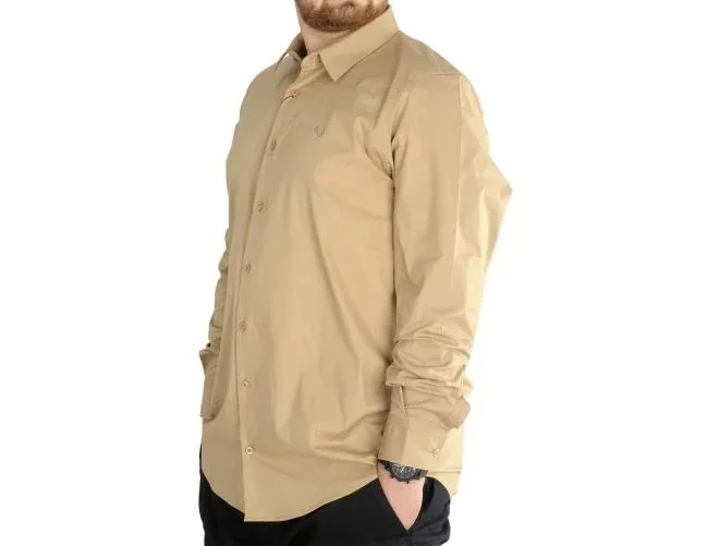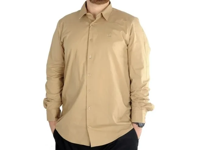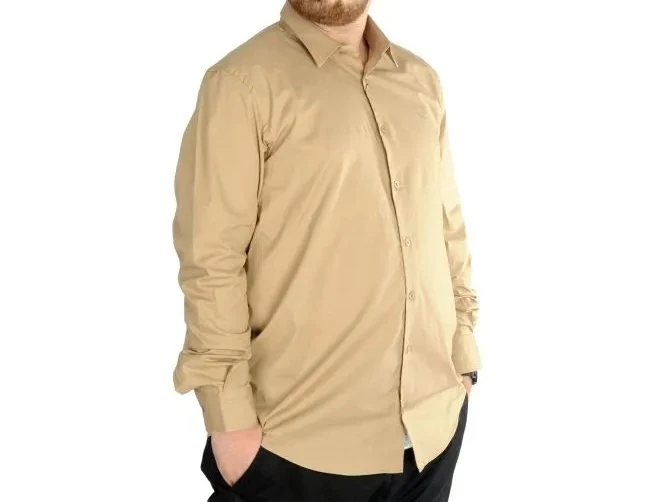 Büyük Beden Erkek Klasik Gömlek Likralı 20351 Bej