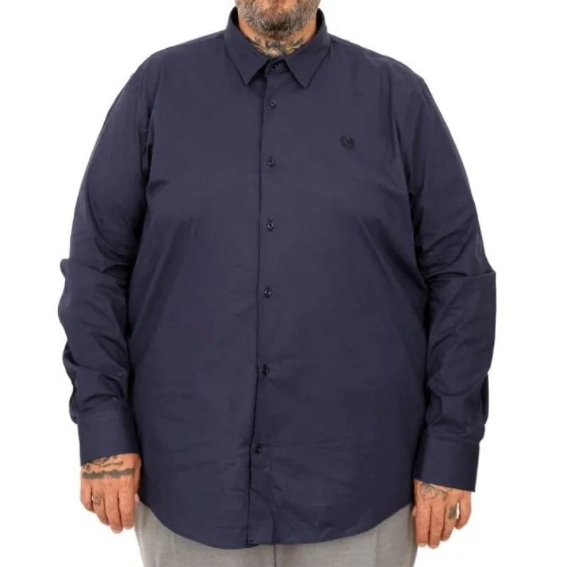Büyük Beden Erkek Klasik Gömlek Likralı 20351 Lacivert