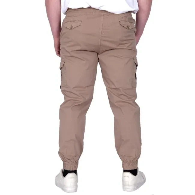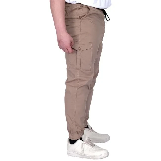 Büyük Beden Erkek Pantolon Keten Kargo Jogger 21911 Cappucino