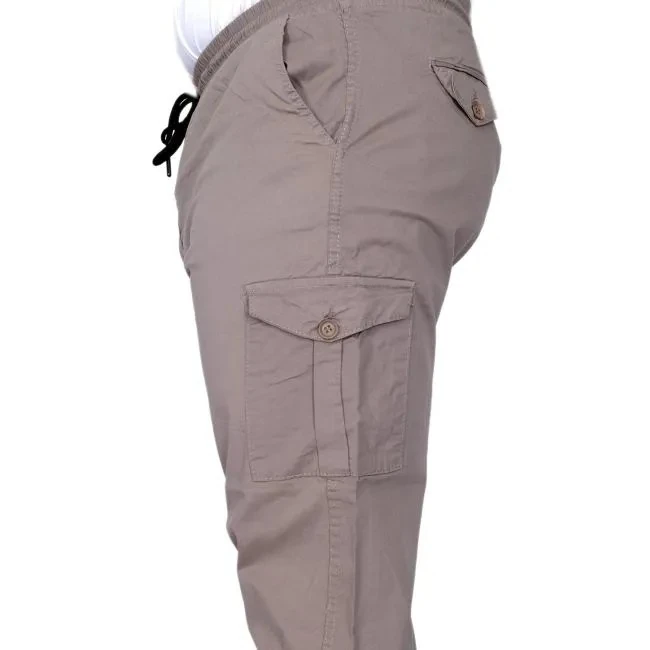 Büyük Beden Erkek Pantolon Keten Kargo Jogger 21911 Taş Rengi