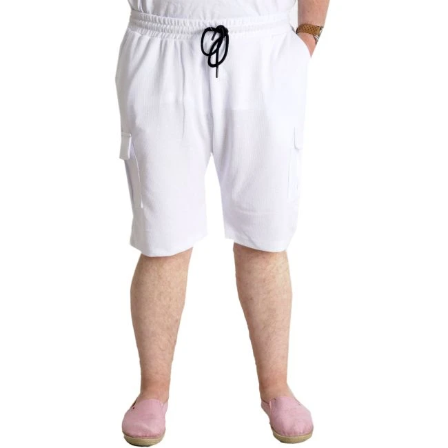 Büyük Beden Erkek Şort Kargo Cep WAFFLE 23500 Beyaz