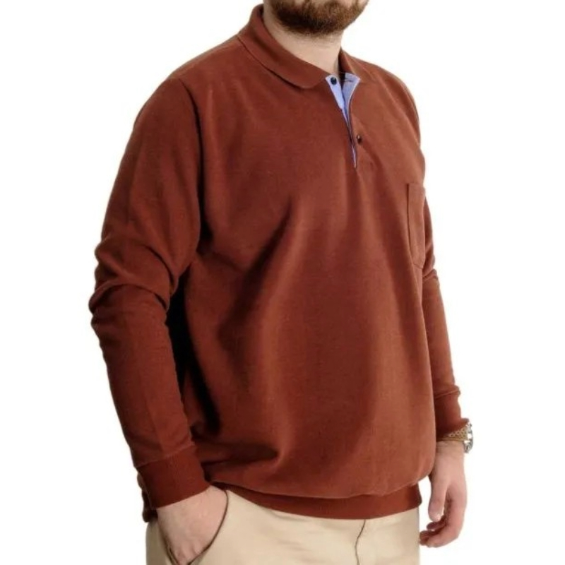 Büyük Beden Erkek Sweat Polo Selanik Basic 20441 Tarçın