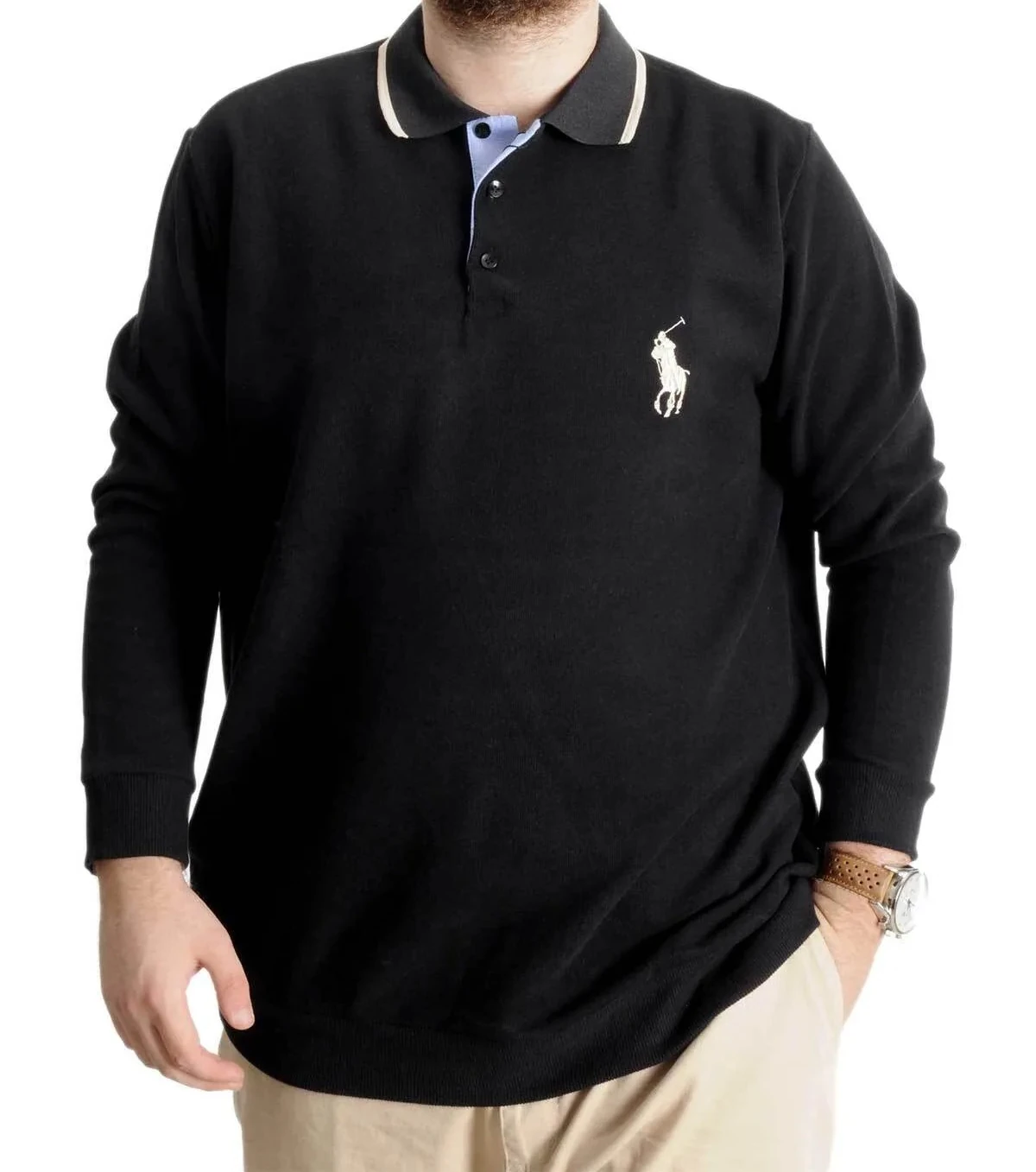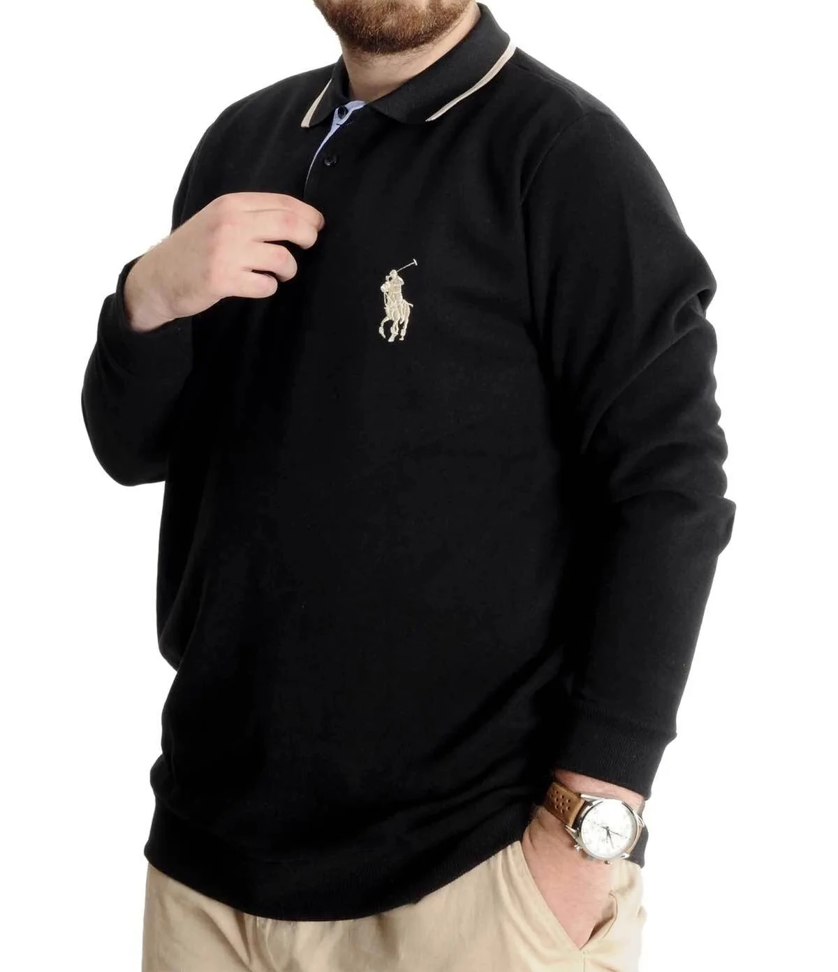 Büyük Beden Erkek Sweat Polo Selanik Horse 23442 Siyah