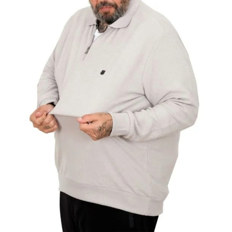 Büyük Beden Erkek Sweat Polo Yaka Waffle Selanik Gri 25822