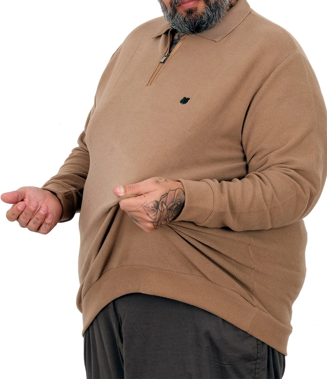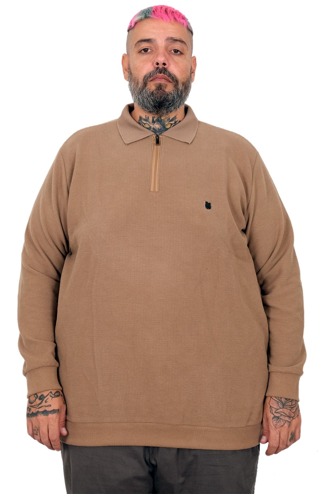 Büyük Beden Erkek Sweat Polo Yaka Waffle Selanik Sütlü Kahve 25822, stil sahibi bireyler için mükemmel bir seçimdir.