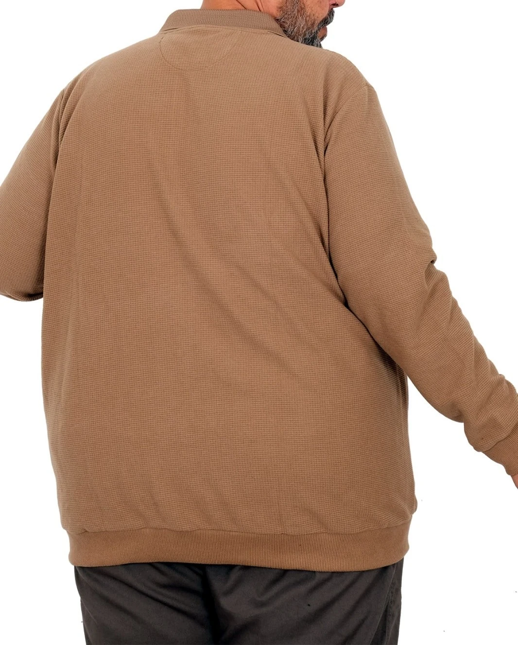 Sütlü kahve rengi, modern ve şık bir görünüm sunarken, waffle selanik dokusu, hem estetik hem de işlevsellik açısından mükemmel bir denge sağlar. Polo yaka tasarımı, klasik bir görünüm sunarak günlük kullanımda rahatlıkla tercih edilebilir.