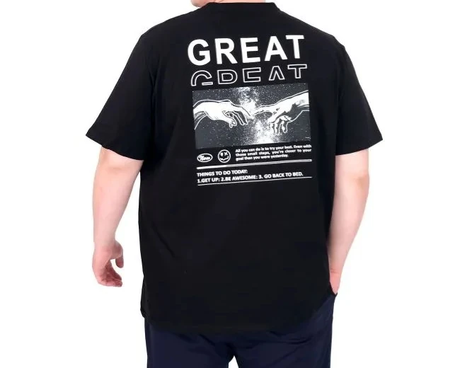 Büyük Beden Erkek T-Shirt Bisiklet Yaka GREAT U25024 Siyah SIYAH Kumaş içeriği: %100 Pamuk Manken Ölçüleri: 203cm / 145kg Beden: 6XL