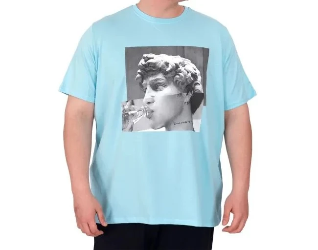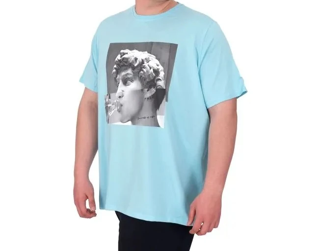 Büyük Beden Erkek T-Shirt Bisiklet Yaka STATUE 25027 Turkuaz
