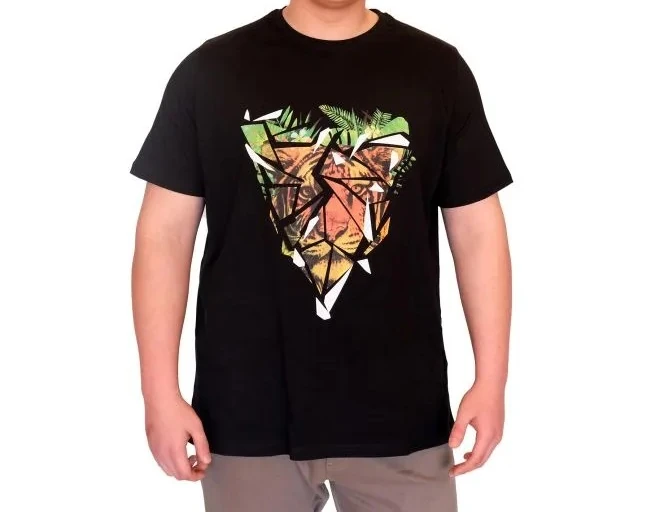 Büyük Beden Erkek T-Shirt Bisiklet Yaka TIGER Baskılı U25007 Siyah