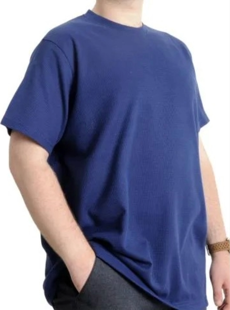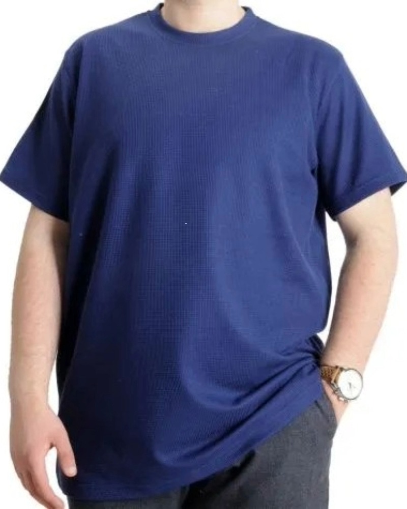 Büyük Beden Erkek T-shirt Bisiklet Yaka Waffle 20033 İndigo