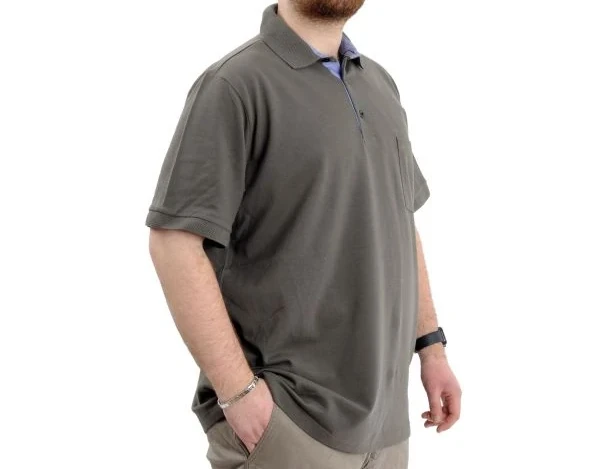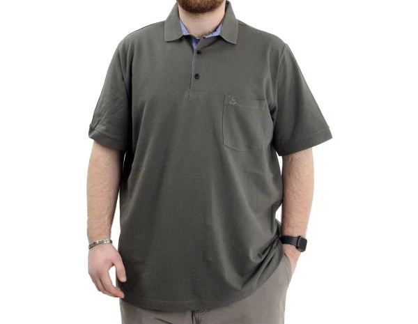 Büyük Beden Erkek T-Shirt Polo Yaka Cepli Klasik 20550 Haki