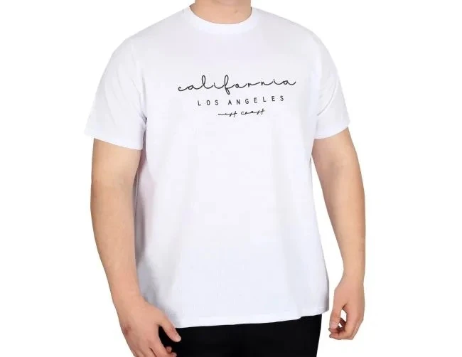 Büyük Beden Erkek Tişört Baskılı LOS ANGELES WAFFLE U25001 Beyaz