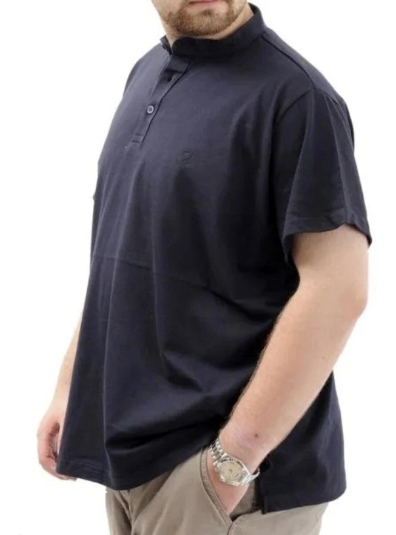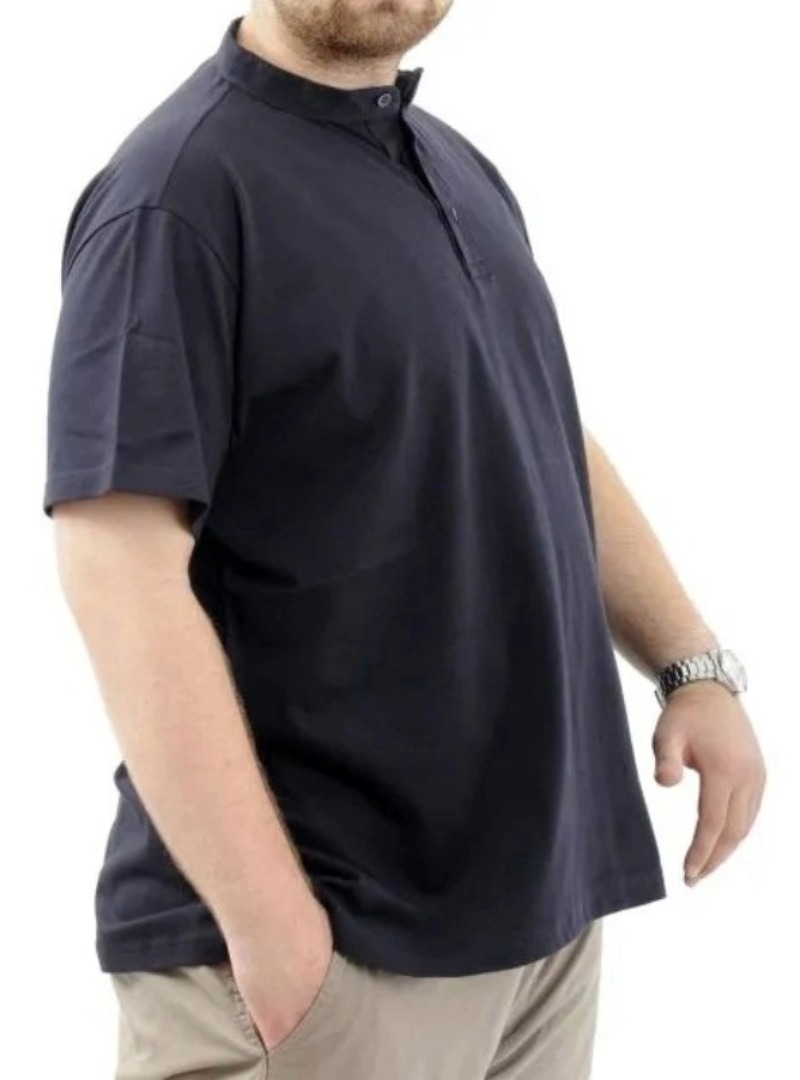 Büyük Beden Erkek Tişört Düğmeli Hakim Yaka T-Shirt 24339 Lacivert