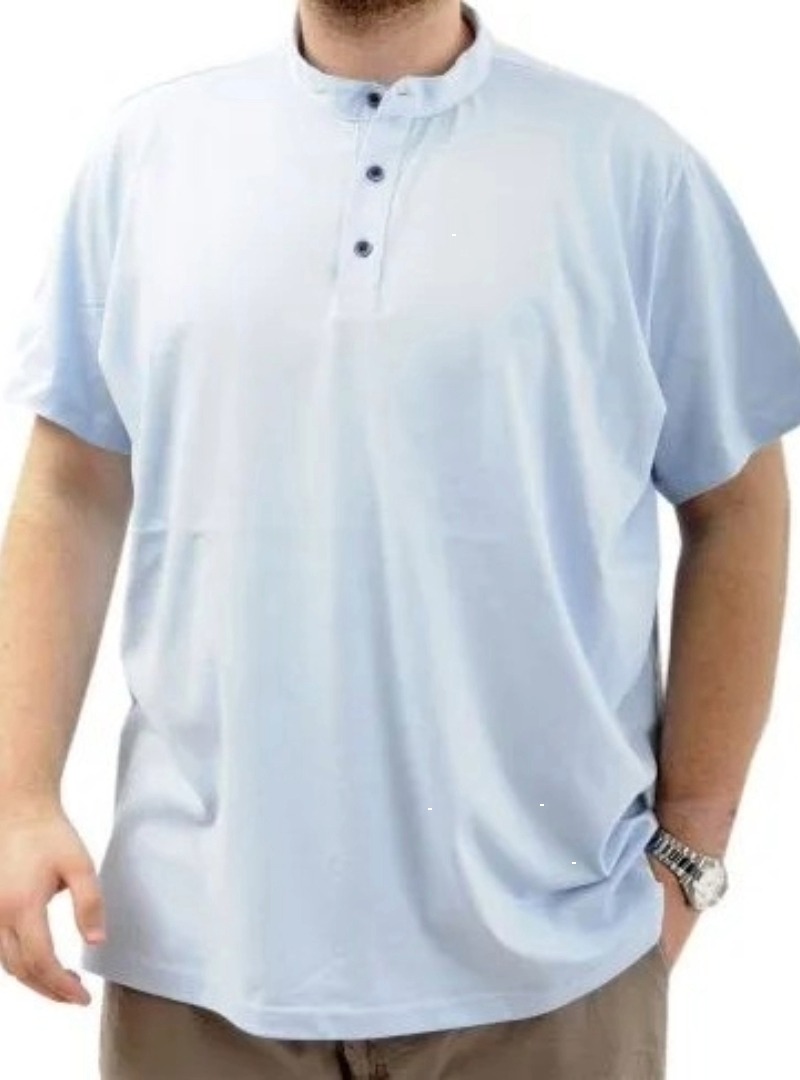 Büyük Beden Erkek Tişört Düğmeli Hakim Yaka T-Shirt 24339 Mavi