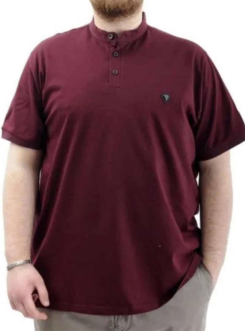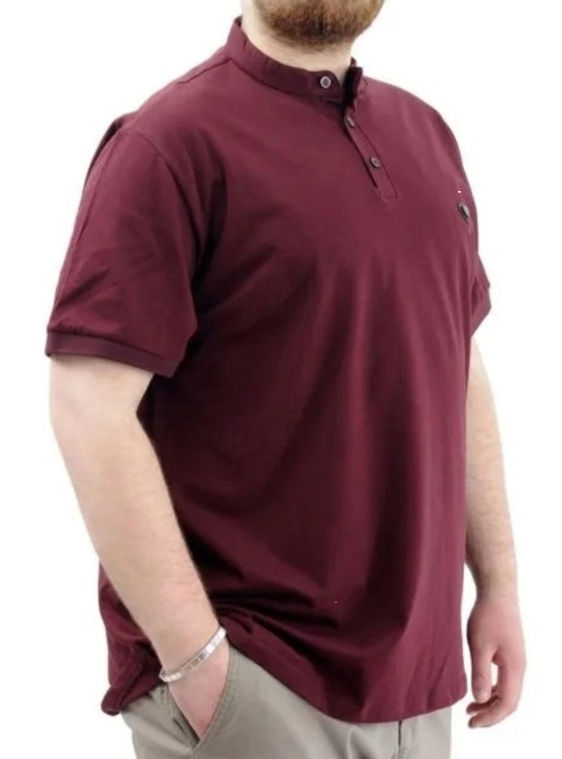 Büyük Beden Erkek Tişört Düğmeli Hakim Yaka T-Shirt 24339 Mürdüm