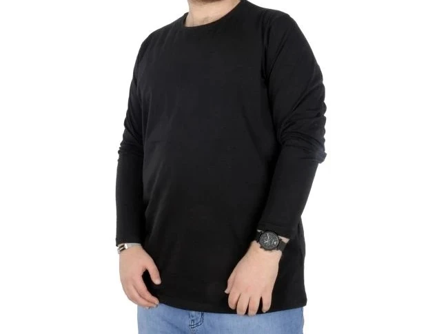 Büyük Beden Erkek Tshirt Likralı Bisiklet Yaka 20102 Siyah