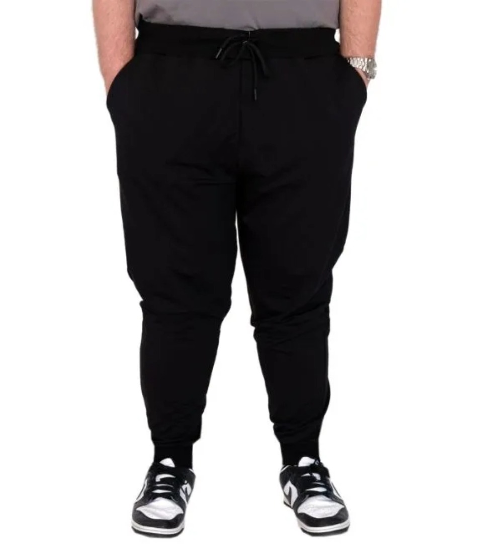 Büyük Beden Erkek Dar paça Esofman Atlı 2 İplik Esnek kumaş özelliği %100 Cotton Mevsimlik Kumaştır. Mankenin Ölçüleri: Boy:183 Kilo:117 Beden 3xl