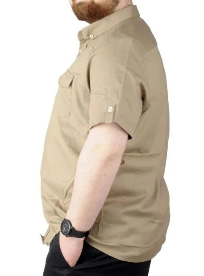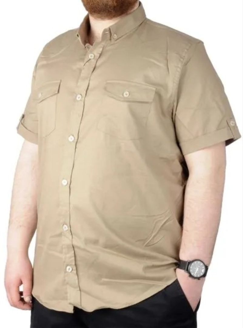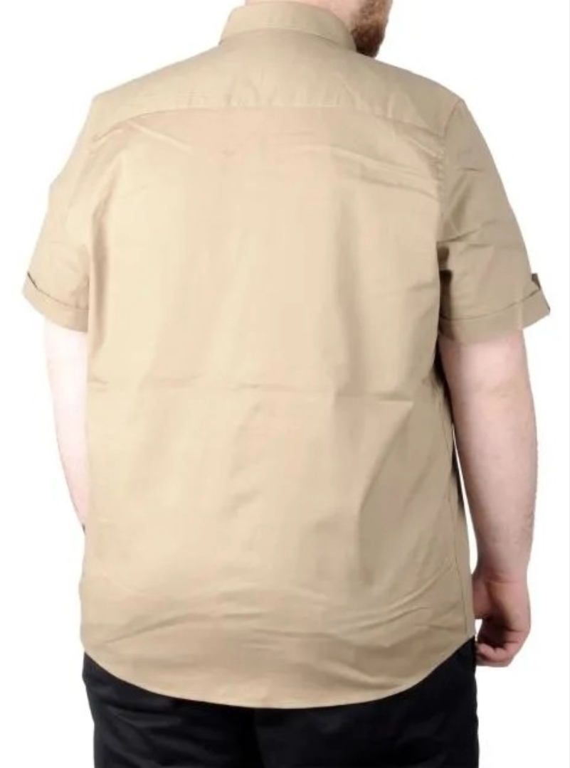 Büyük Beden Gömlek KKol Çift Cep Kapaklı 20361 Bej