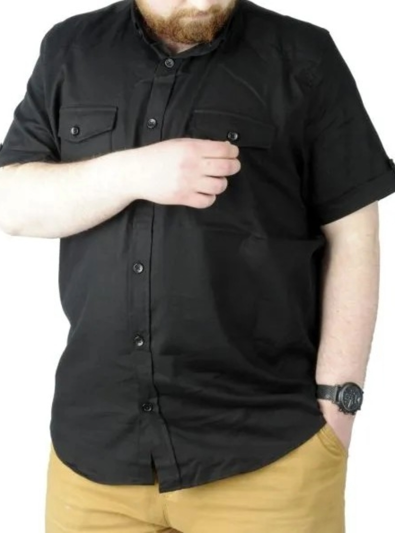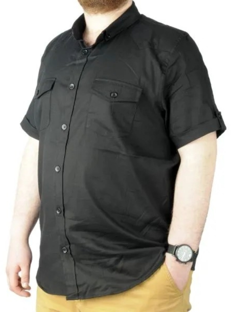 Büyük Beden Gömlek KKol Çift Cep Kapaklı 20361 Siyah