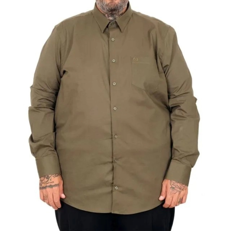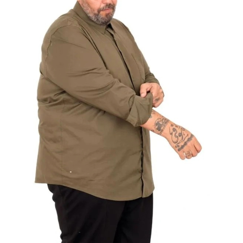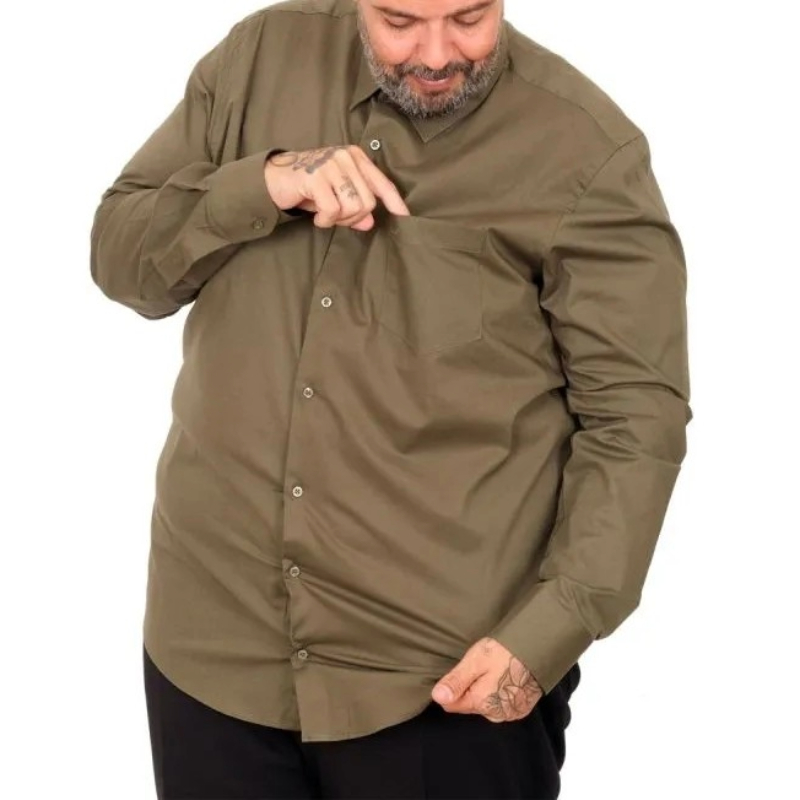 Büyük Beden Gömlek Ukol Cep Lycra Poplin 20350 Haki