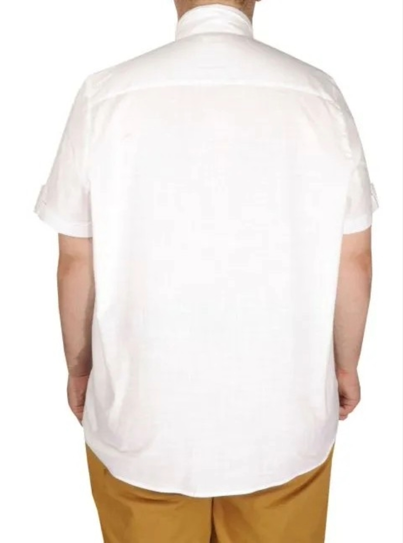 Beyaz rengi ile her türlü kombinle uyum sağlayan bu gömlek, cepli tasarımı ile pratiklik sunar. Modelin ölçüleri 1.83 cm boy ve 117 kg ağırlığındadır, bu da 3XL bedenin ideal bir örneğini temsil etmektedir. Gömleğin kesimi, geniş beden aralığı ile rahat bir kullanım deneyimi sunar.