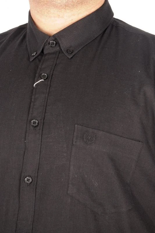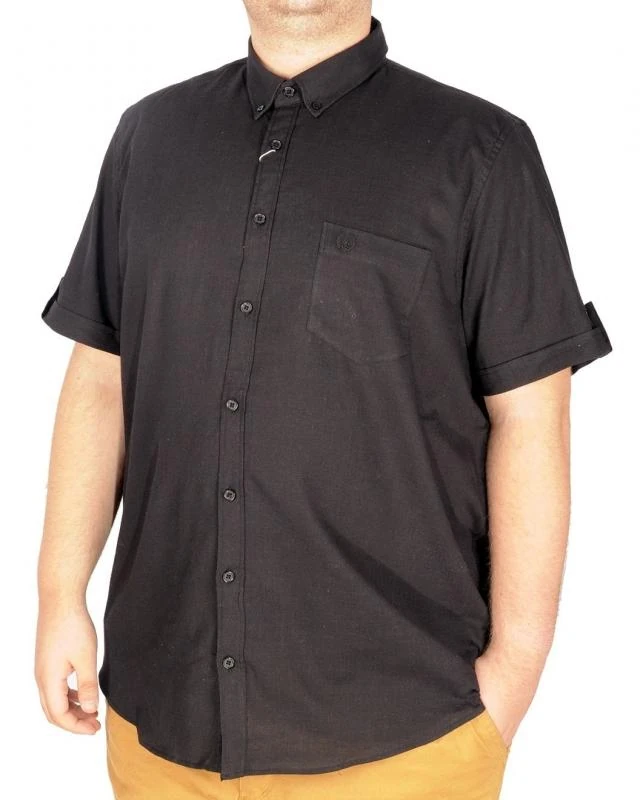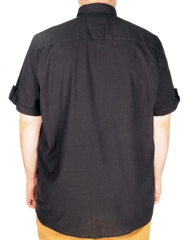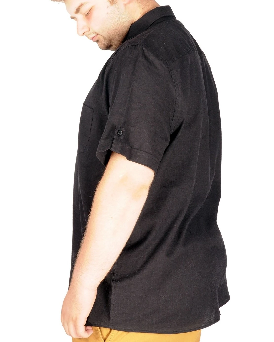 Büyük Beden Keten Likralı Gömlek Cepli 20389 Siyah