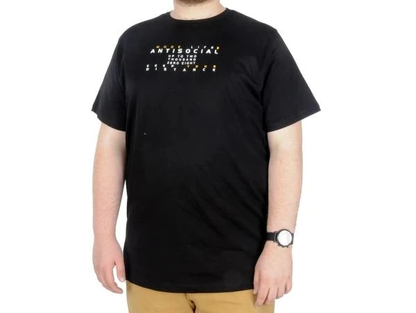 Büyük Beden T-Shirt Bis Yaka Antisocial 22187 Siyah