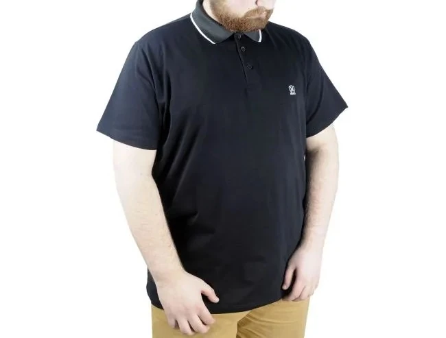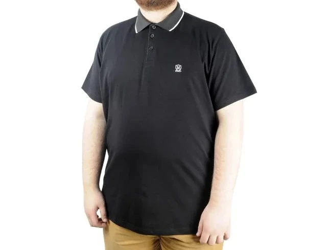 Büyük Beden T shirt Polo Likralı Süprem Nakış 21554 Siyah