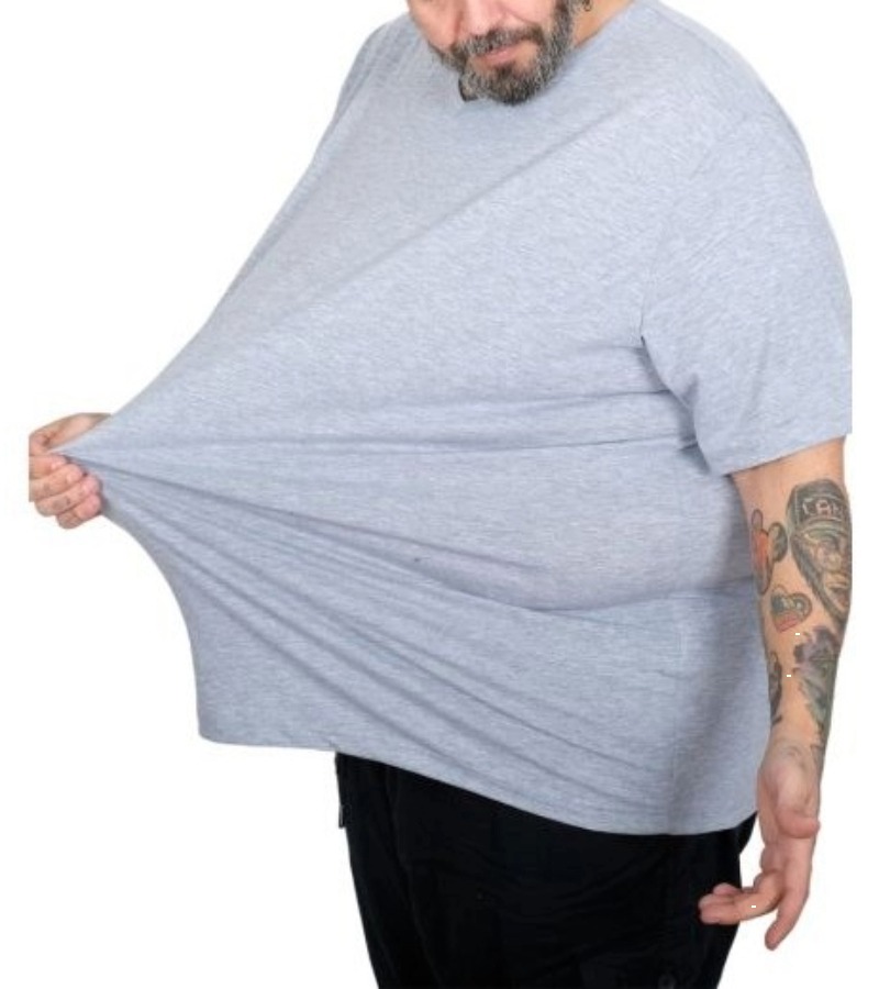 Büyük Beden Erkek/Bayan V Yaka Tshirt Mevsimlik İnce Kumaş, Hafif Likralı ve dökümlü özel üretilmiş Türk kumaşı kullanılmıştır, %97 Pamuk %3 likra Modelin Ölçüleri Boy : 1.83 cm Kilo : 120 kg Beden : 3XL