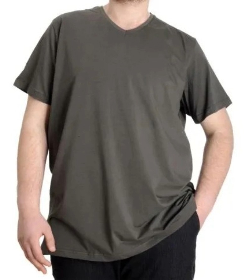 Büyük Beden T-Shirt V Yaka Likralı 20150 Haki