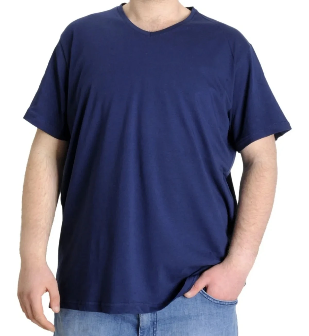 Büyük Beden T-Shirt V Yaka Likralı 20150 İndigo