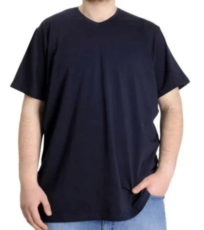 Büyük Beden T-Shirt V Yaka Likralı 20150 Lacivert