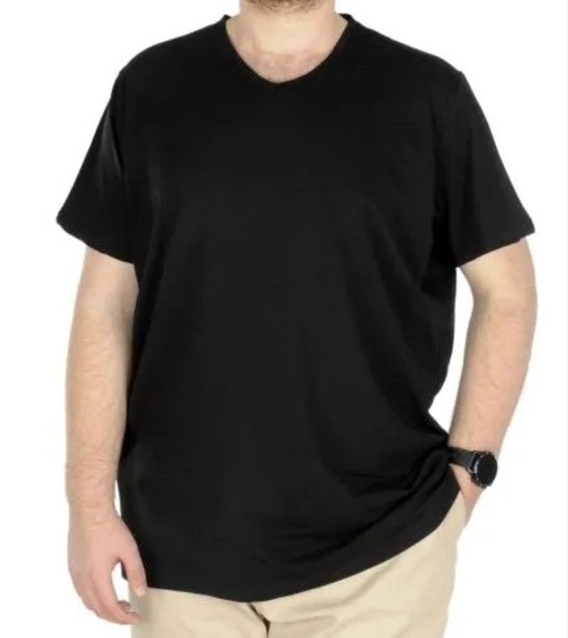 Büyük Beden T-Shirt V Yaka Likralı 20150 Siyah