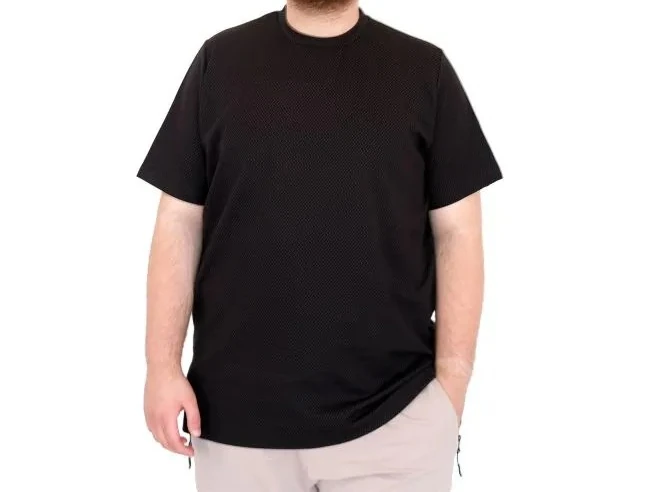 Büyük Beden Tshirt Bıs Yaka Dore 25034 Siyah