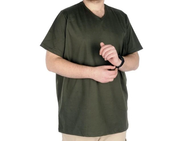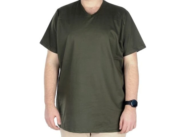 Büyük Beden T-Shirt V Yaka 20032 Haki