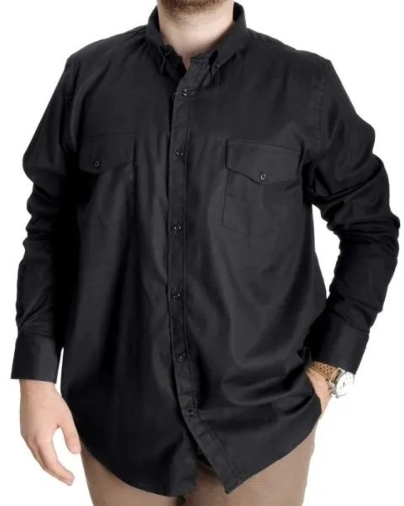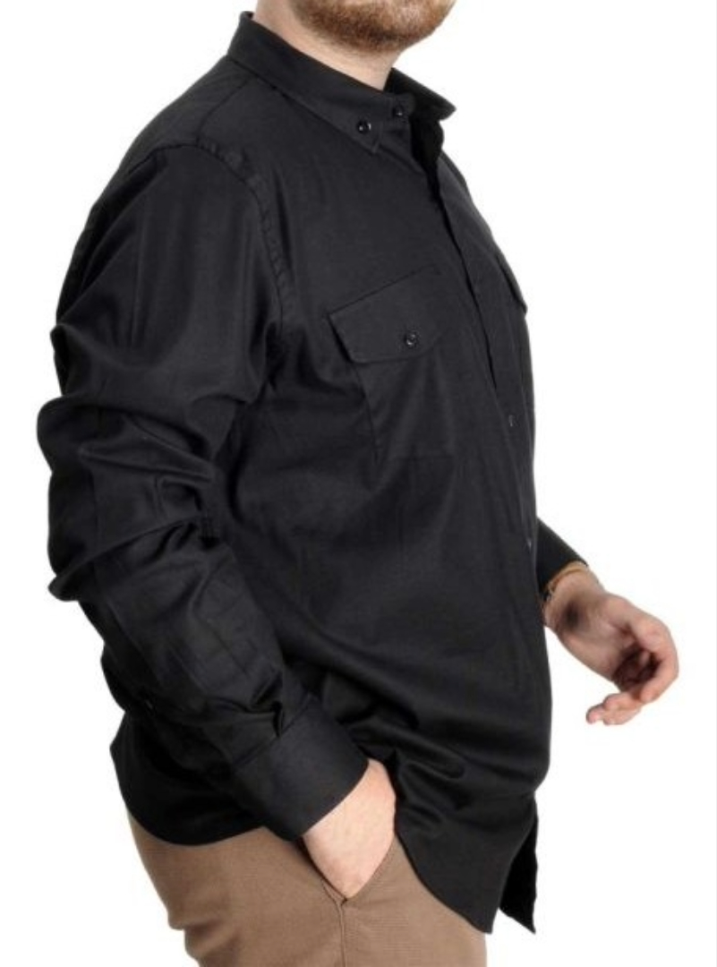 Erkek Gömlek UKol Gabardin Çift Cep 20360 Siyah